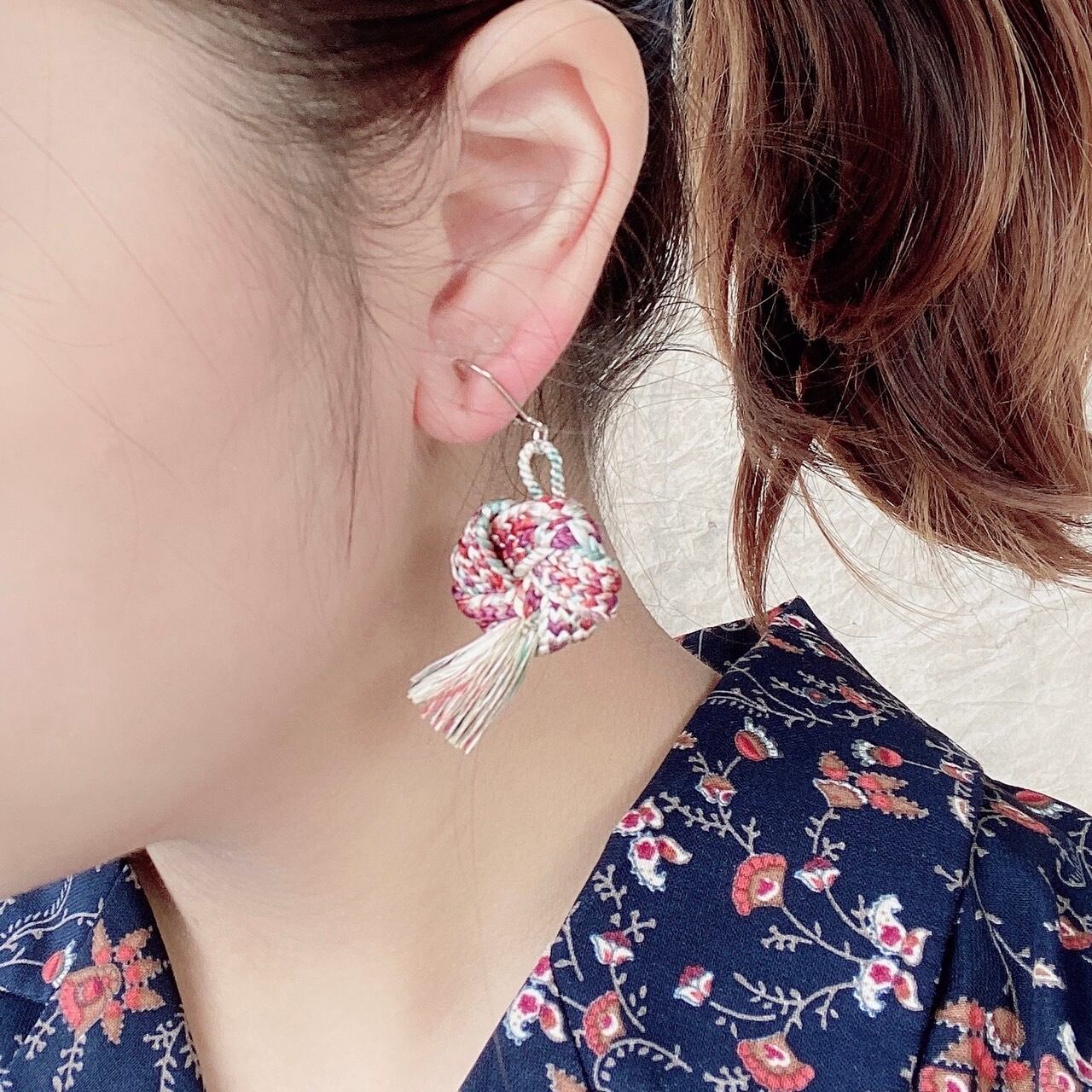 組紐は、絹糸を組み上げた紐であり古来より伝わる日本の伝統工芸品の一つです。映画「君の名は」でも物語のキーポイントとなったよう,人と人とを,結ぶパワーが込められていると言われています。そんな伝統工芸品を身につけやすいアクセサリーにしてみました。